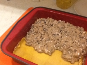 Adding Second Half of Batter on Top of Marzipan Layer